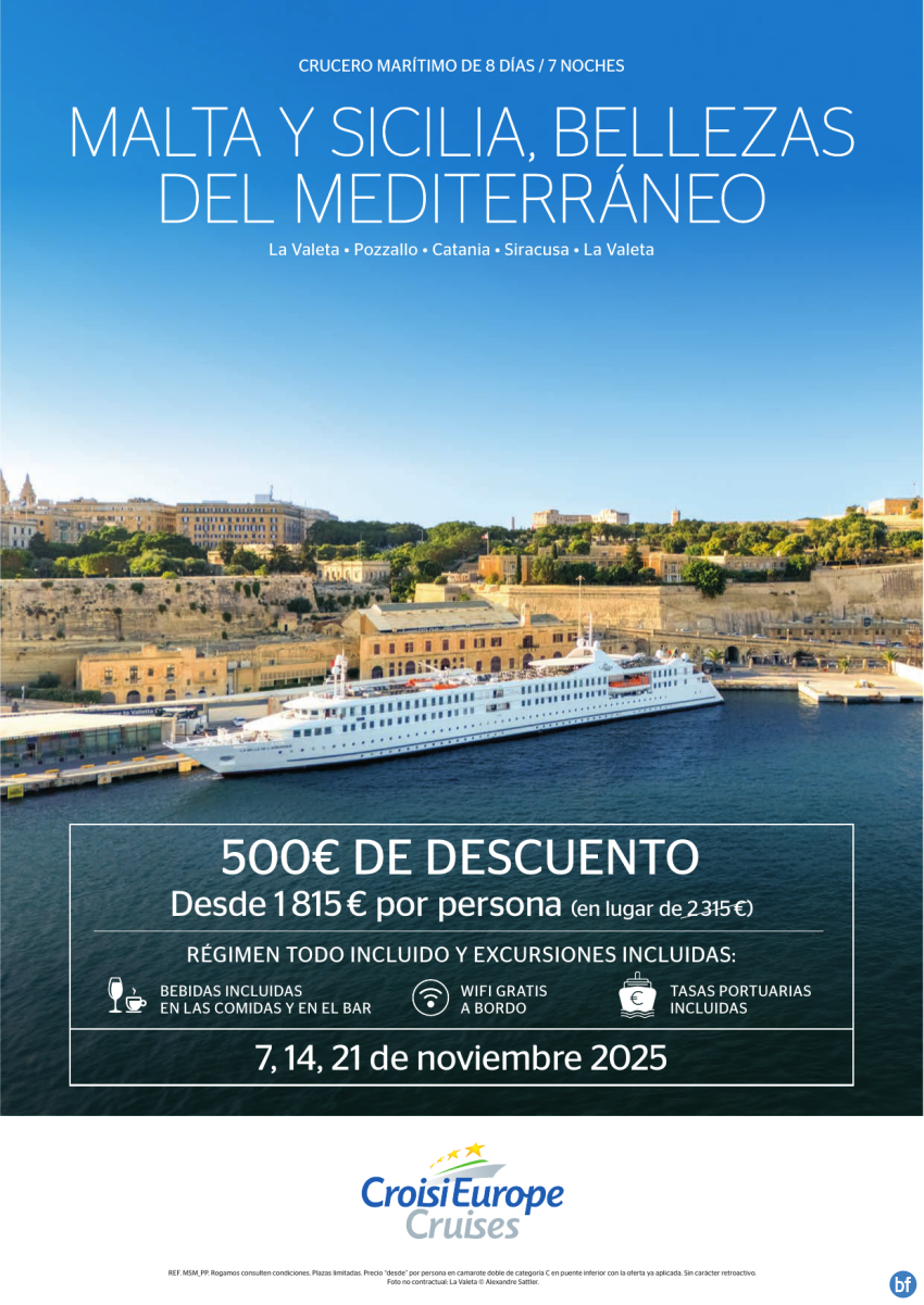 Hasta 500€ DESCUENTO - crucero Malta y Sicilia - 8 días - Todo Incluido - 07/11 + 14/11 + 21/11